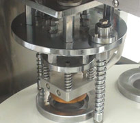 ○ 該灌裝生產線具有六個同步注脂灌裝頭,油脂可均勻地被擠壓灌裝到容器里。