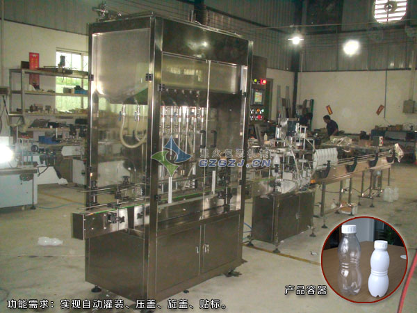 根據(jù)客戶要求的生產(chǎn)需求,我司為其配置全自動六頭液體灌裝機,自動壓蓋旋蓋機等設備