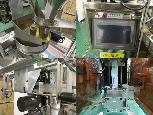2、本機(jī)與計(jì)量裝置相配即可完成計(jì)量,送料、充填制袋、日期打印、成品輸送的全部包裝過程;