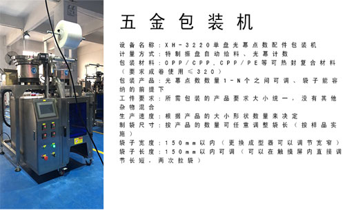 全自動五金件包裝機適用范圍: